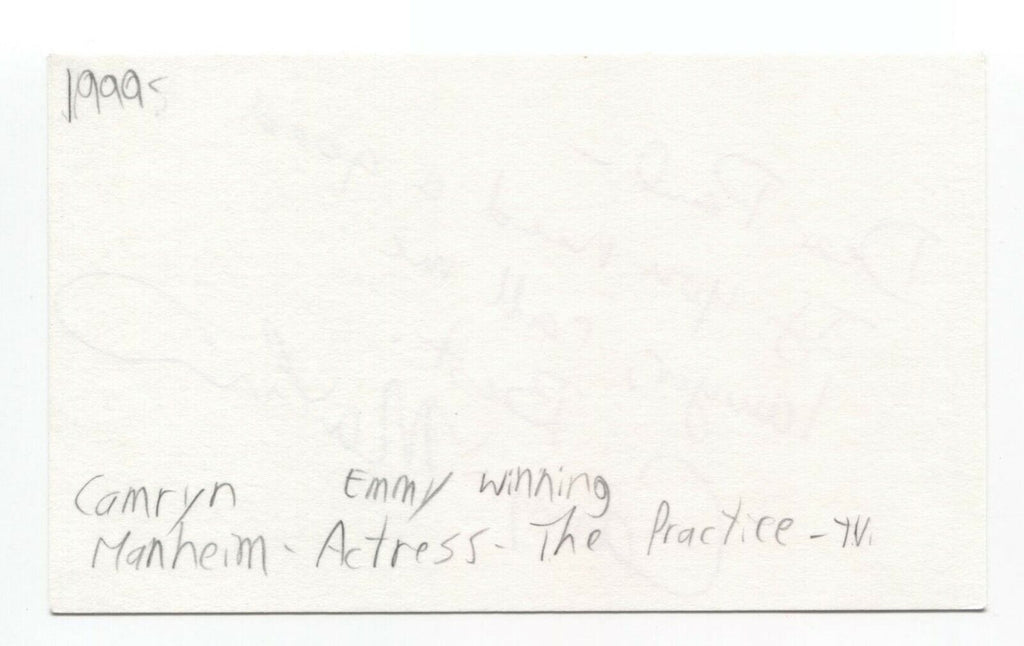 Up for sale is an autographed 3x5 index card, boldly signed by Camryn Manheim.   Autograph was part of an enormous collection of over 9000 in person collected signatures.