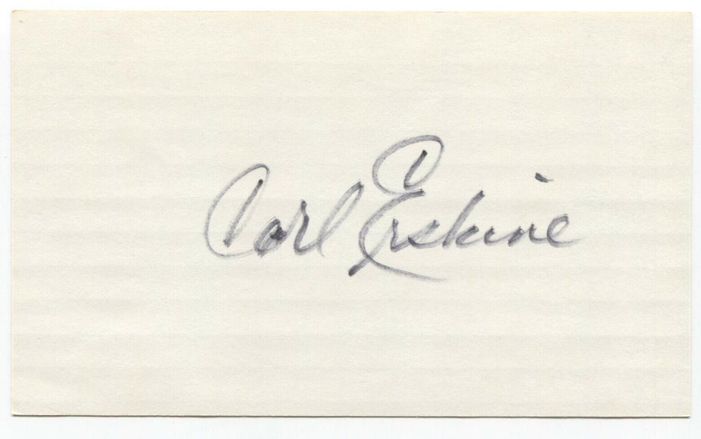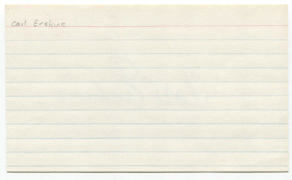 Carl Esrkine Signed 3x5 Index Card Baseball Autographed Signature