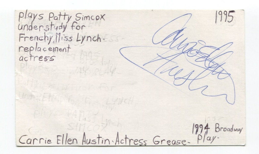 Carrie Ellen Austin Signed 3x5 Index Card Autographed Actor Grease Freshman Dorm