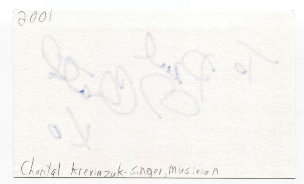 Up for sale is an autographed 3x5 index card, boldly signed by Chantal Kreviazuk. This autograph was part of an enormous collection of over 9000 in person collected signatures.