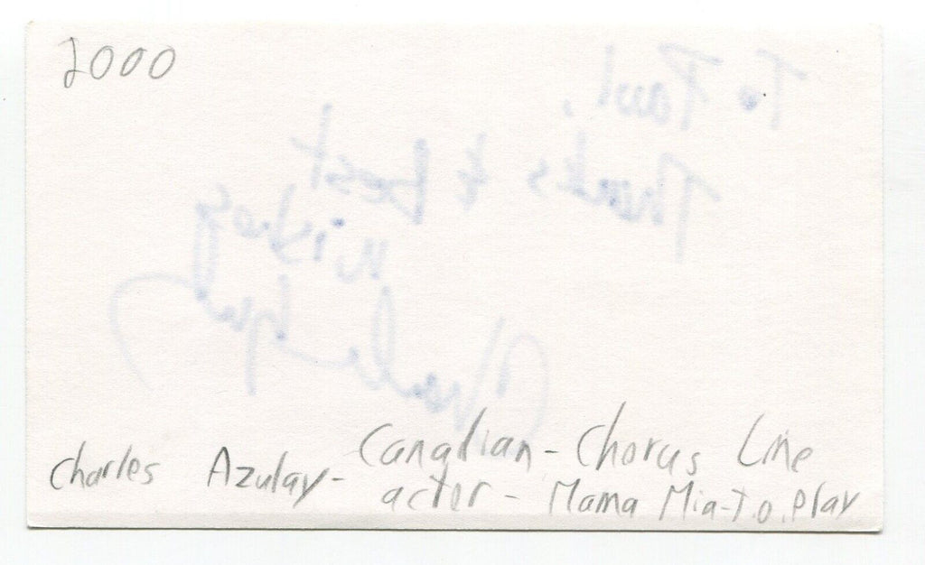 Charles Azulay Signed 3x5 Index Card Autographed Actor Chorus Line Mamma Mia