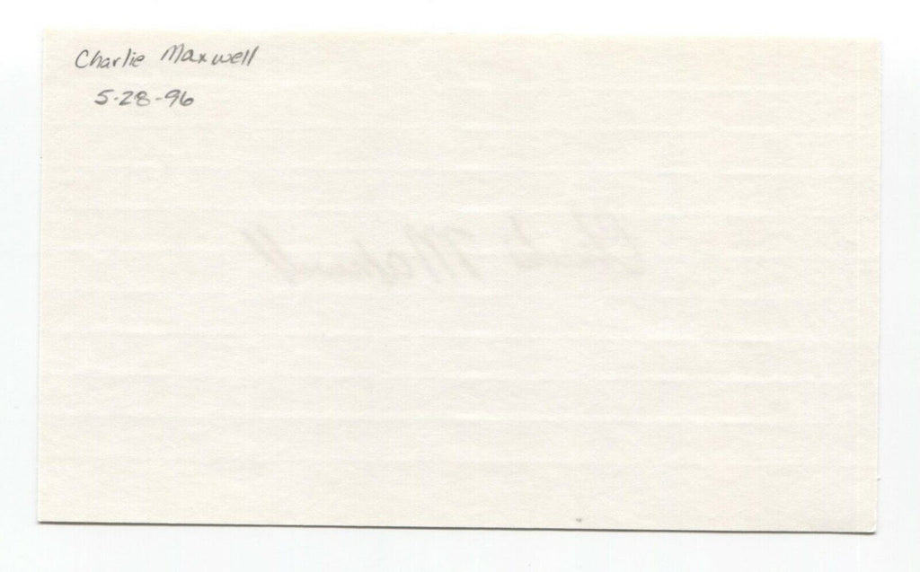 Up for sale is an autographed 3x5 index card, boldly signed by Charlie Maxwell. Just a great looking autograph that will display nicely. Autograph was part of a large collection of over 325 baseball signatures that I was fortunate to purchase in it's entirety.