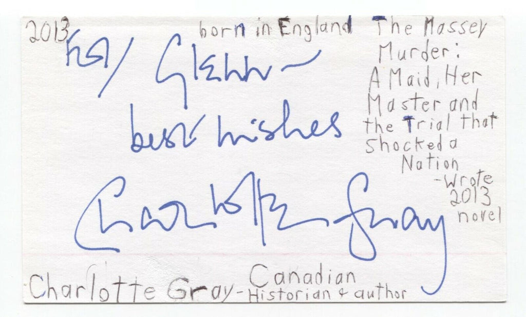 Charlotte Gray Signed 3x5 Index Card Autographed Signature Author Writer