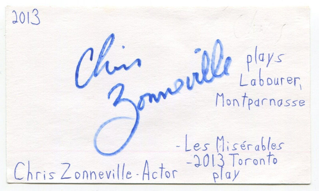 Chris Zonneville Signed 3x5 Index Card Autograph Actor Les Miserables