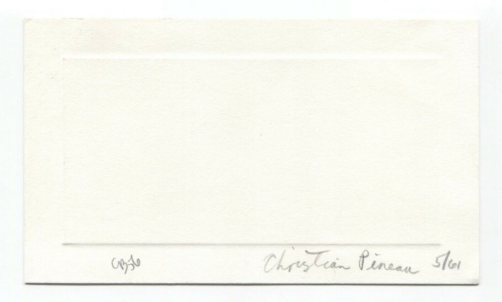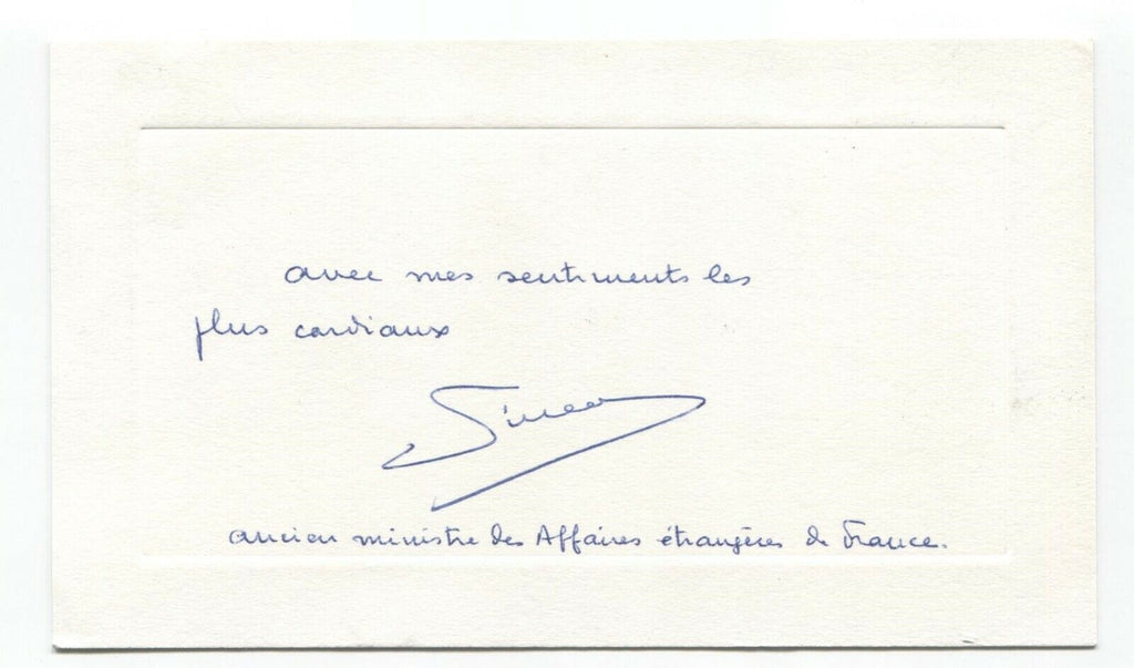 Up for sale is a signed 5.5 x 3.5 inch thick paper card, boldly autographed by Christian Pineau.  Autograph was part of the well known single owner, original "Roger Harris" collection of thousands of autographs, acquired over many decades of collecting.