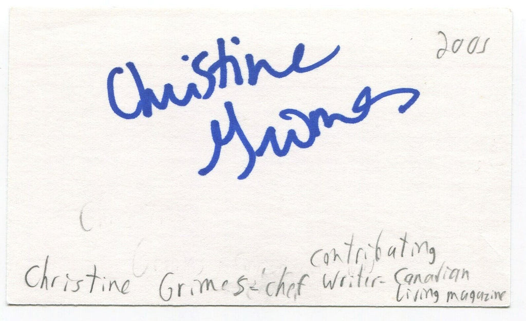 Christine Grims Signed 3x5 Index Card Autographed Writer Canadian Living
