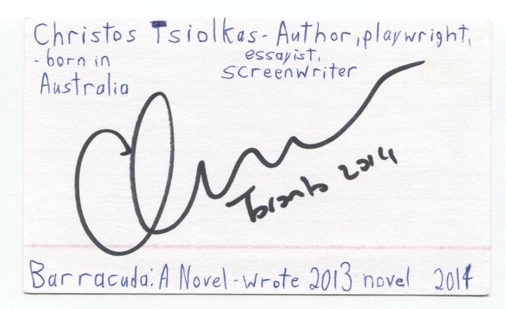 Christos Tsiolkas Signed 3x5 Index Card Autographed Signature Author Writer