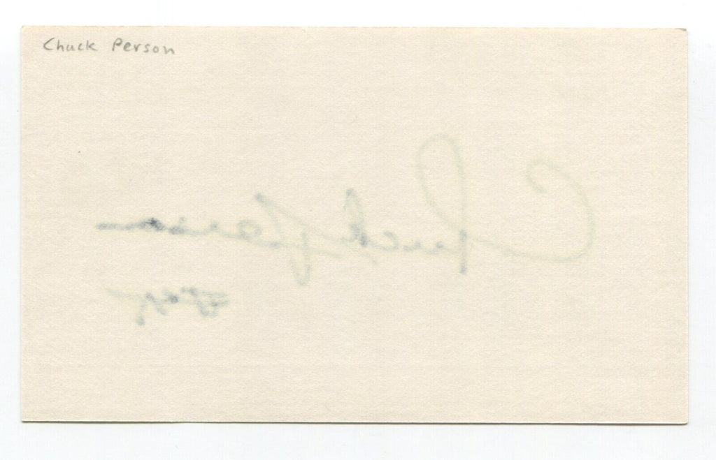 Up for sale is an autographed 3x5 index card, signed by basketball player Chuck Person. Just a great looking autograph that will display nicely. Autograph was part of the Lynnwood Collection of over 100 signed index cards.