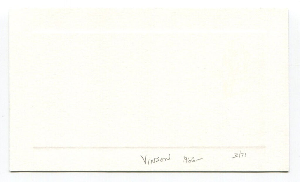 Up for sale is an autographed approximately 3.5 x 5.5 inch card, boldly signed by baseball player Chuck Vinson. Just a great looking autograph that will display nicely. Autograph was acquired by renowned autograph collector Roger Harris.