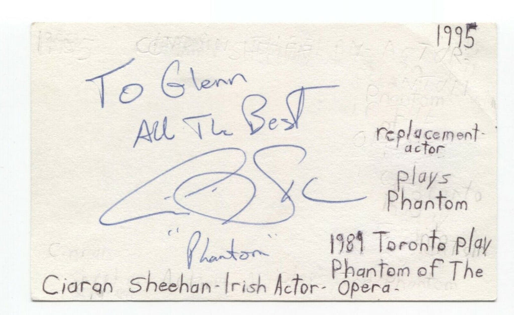 Up for sale is an autographed index card, boldly signed by actress Ciaran Sheehan.  This autograph was part of an enormous collection of over 9000 in person collected signatures.