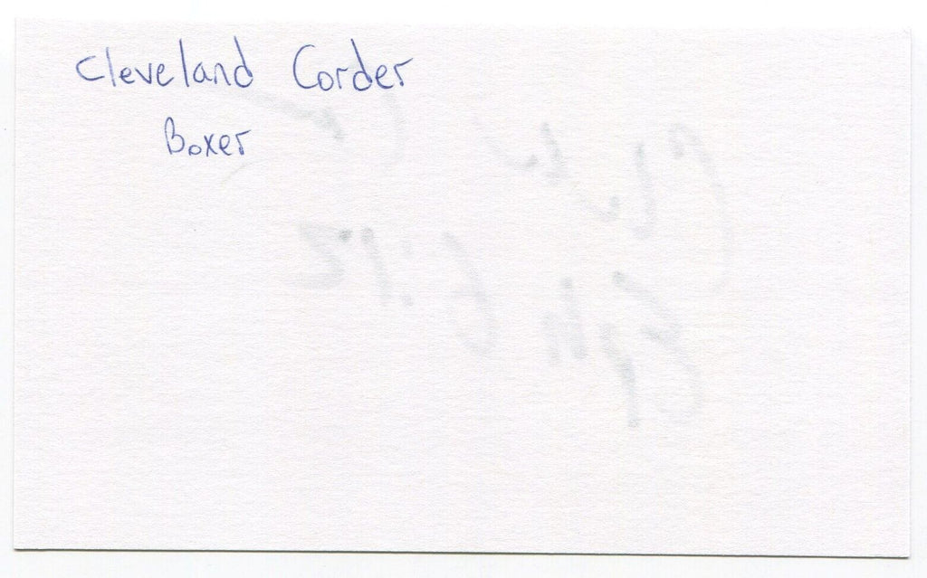 Up for sale is an autographed 3x5 index card, boldly signed by boxer Cleveland Corder. Just a great looking autograph that will display nicely.   Autograph was part of a huge "MP" Collection, consisting of over 3,000 signed index cards that I was fortunate to purchase in it's entirety.