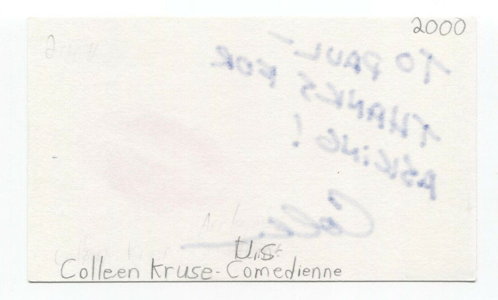Colleen Kruse Signed 3x5 Index Card Autographed Signature Comedian Comic