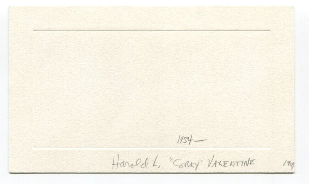 Up for sale is an autographed approximately 3.5 x 5.5 inch card, boldly signed by baseball player Corky Valentine. Just a great looking autograph that will display nicely. Autograph was acquired by renowned autograph collector Roger Harris.