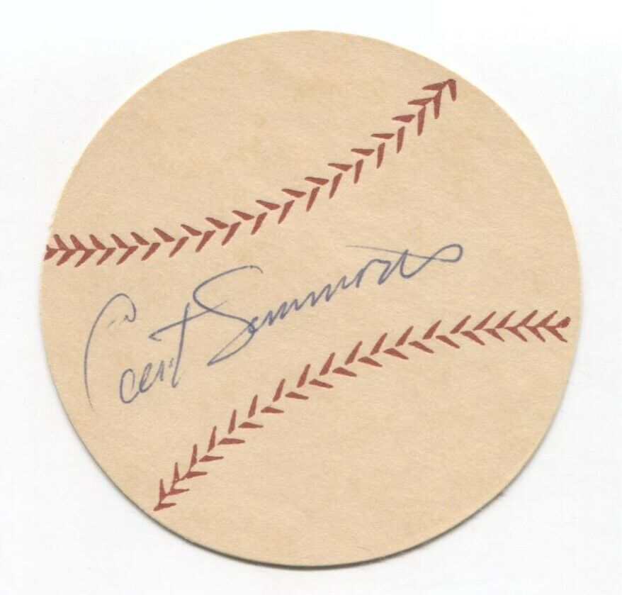 Up for sale is a signed thick paper stock baseball measuring approximately 2.5 inches in diameter, featuring an autograph of Curt Simmons. This autograph was part of a large collection of over 700 vintage baseball autographs and memorabilia, all obtained between 1952 and 1954 by the same original owner.