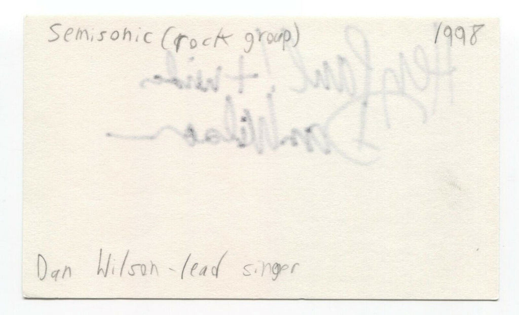 Up for sale is an autographed 3x5 index card, boldly signed by Dan Wilson, lead singer of Semisonic. Autograph was part of an enormous collection of over 9000 in person collected signatures that I was fortunate to purchase in it's entirety.
