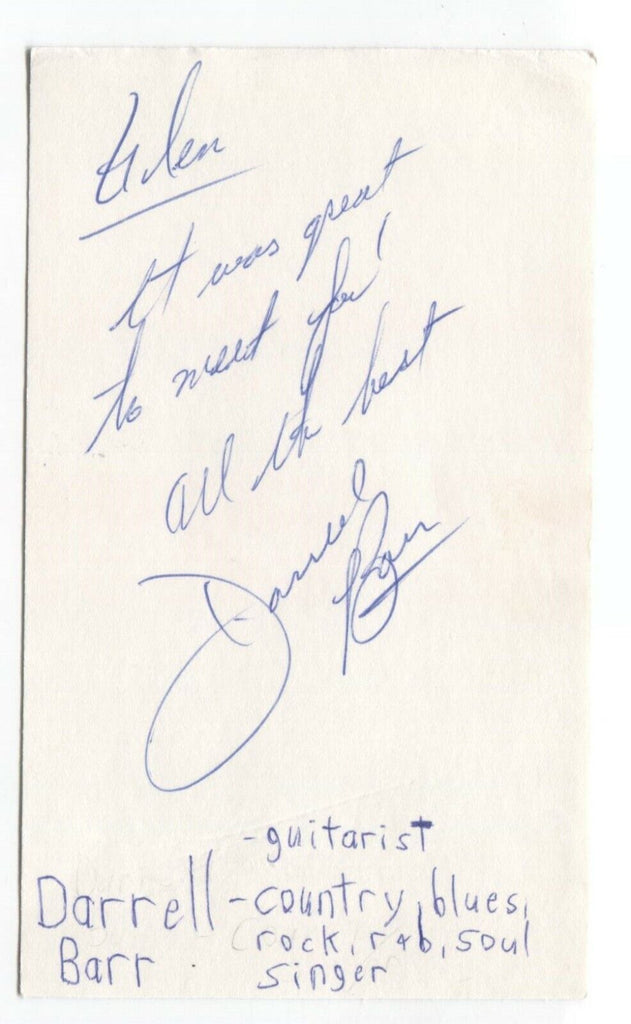 Darrell Barr Signed 3x5 Index Card Autographed Signature Singer Musician