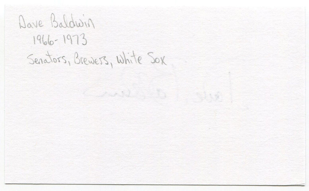 Dave Baldwin Signed 3x5 Index Card Autographed Washington Senators Debut 1966