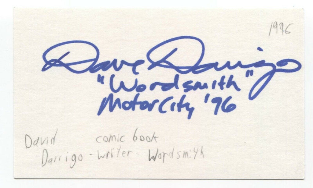 Dave Darrigo Signed 3x5 Index Card Autographed Comic Book Writer