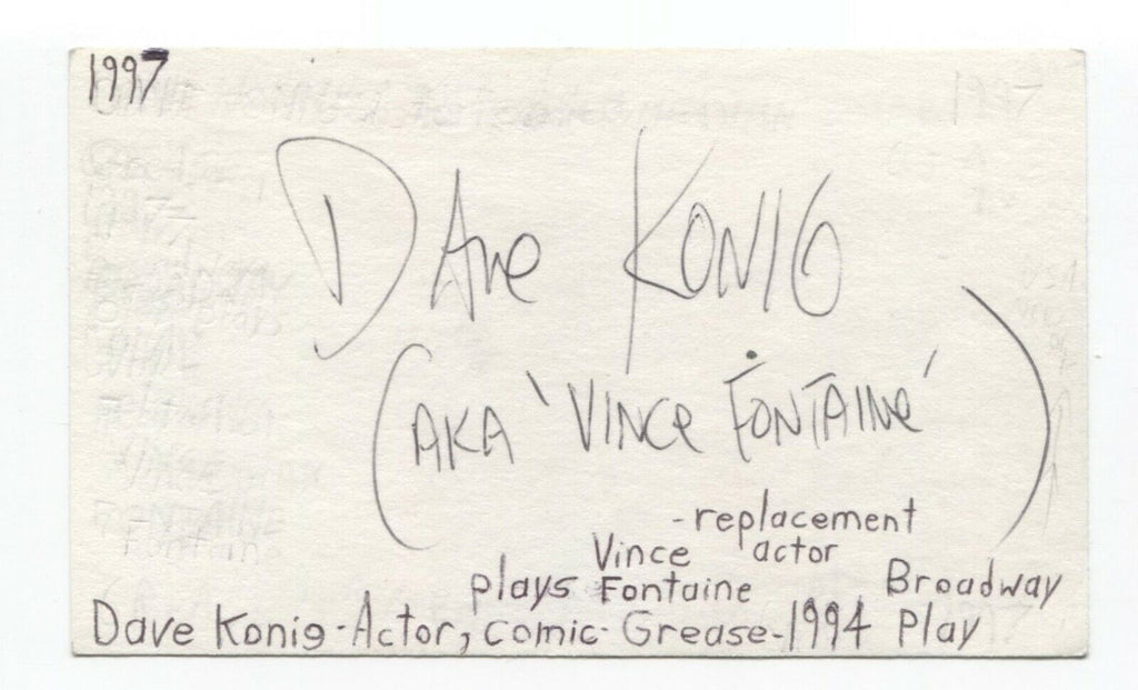 Dave Konig Signed 3x5 Index Card Autographed Signature Actor