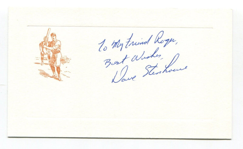 Up for sale is an autographed approximately 3.5 x 5.5 inch card, boldly signed by baseball player Dave Stenhouse. Just a great looking autograph that will display nicely.   Autograph was acquired by renowned autograph collector Roger Harris.
