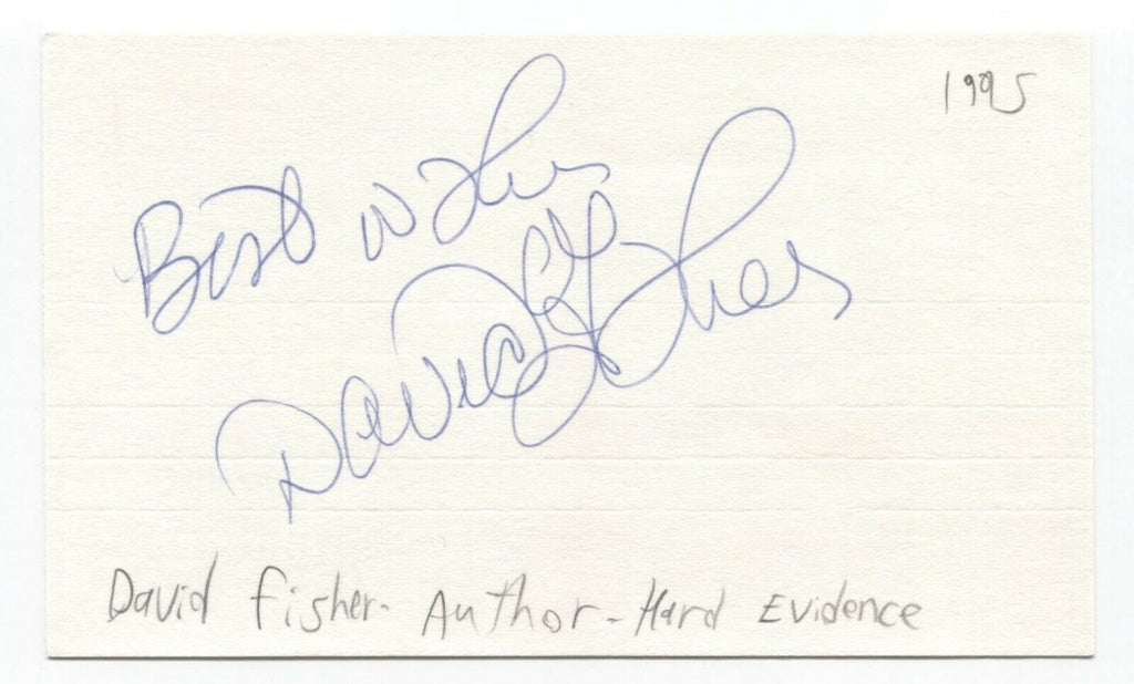 Up for sale is an autographed 3x5 index card, boldly signed by author David FisherThis autograph was part of an enormous collection of over 9000 in person collected signatures.