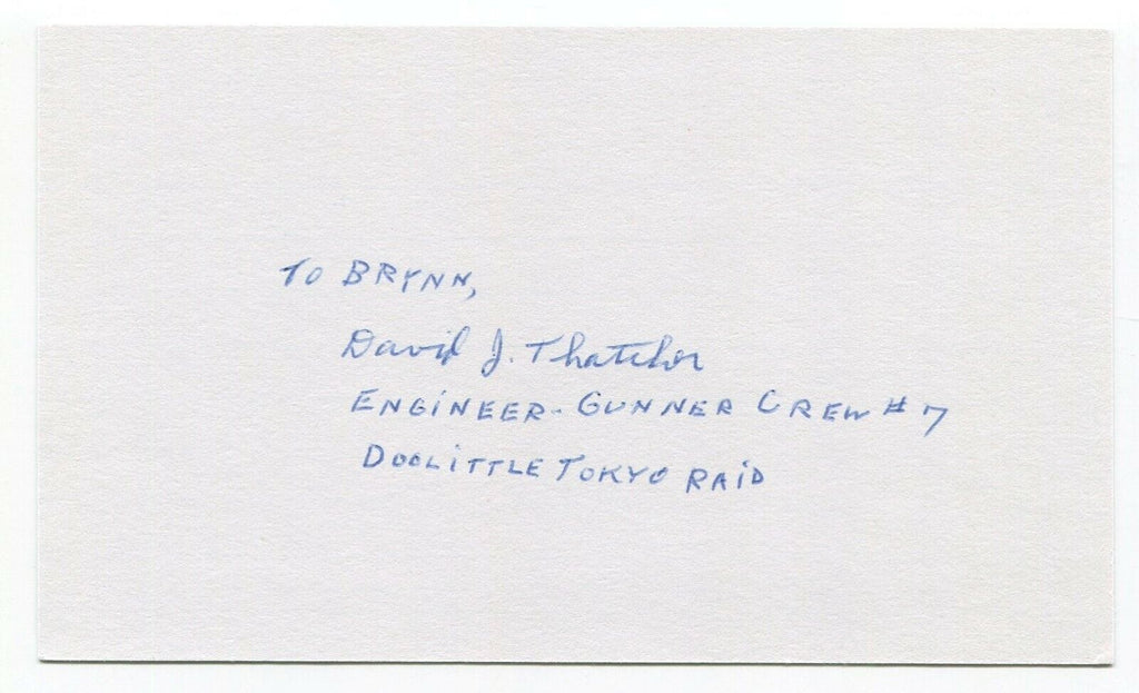 David J. Thatcher Signed 3x5 Index Card Autographed WWII Doolittle Raiders