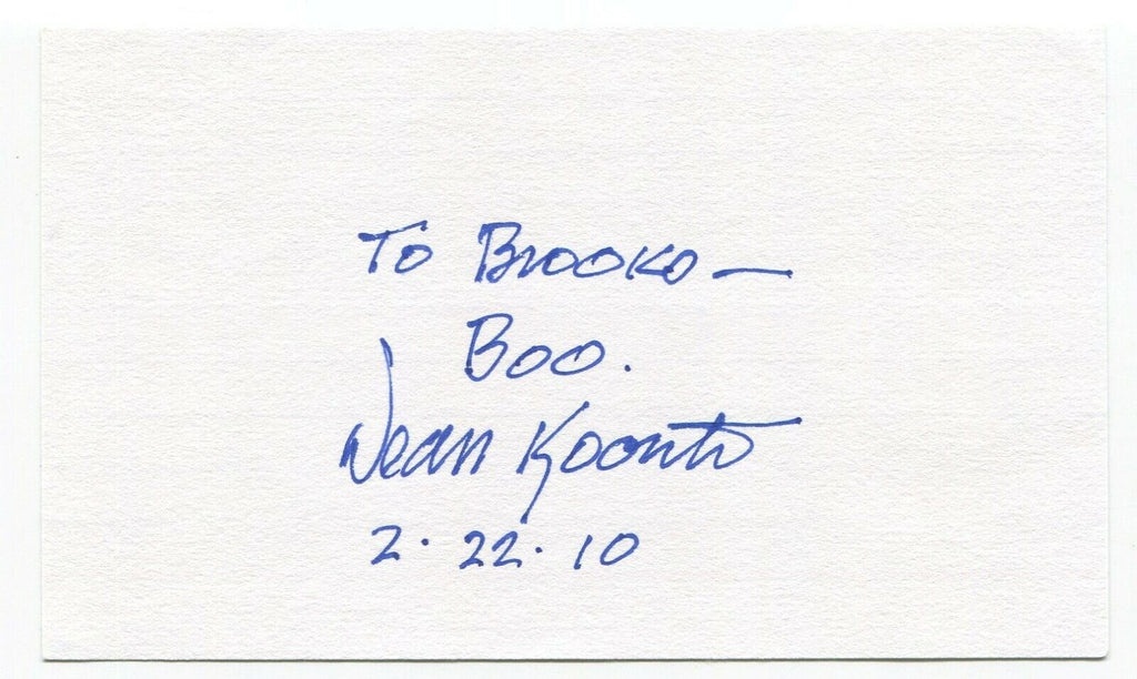 Up for sale is an autographed 3x5 index card, boldly signed by author Dean Koontz. Autograph was part of the large "Brooks Wyatt" collection of over 700 signatures that I was fortunate to purchase in it's entirety.