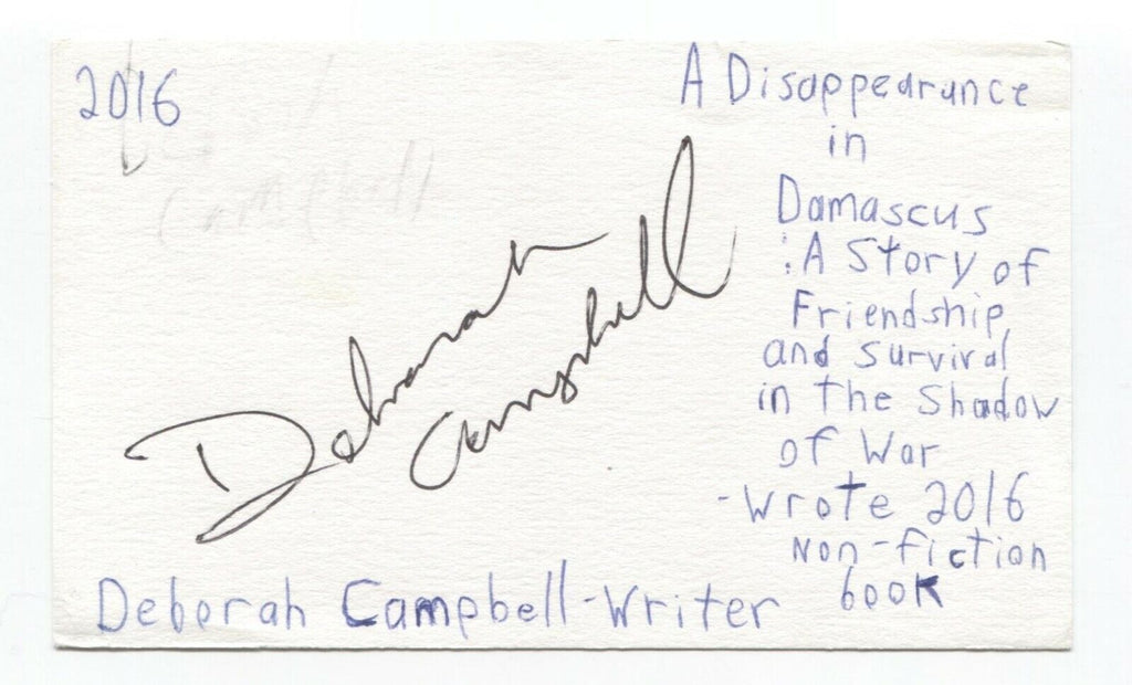 Up for sale is an autographed 3x5 index card, boldly signed by author Deborah Campbell. This autograph was part of an enormous collection of over 9000 in person collected signatures.