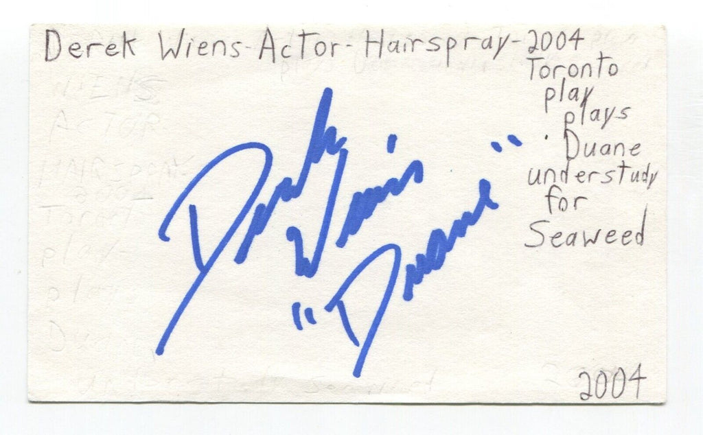 Derek Wiens Signed 3x5 Index Card Autograph Actor Hairspray