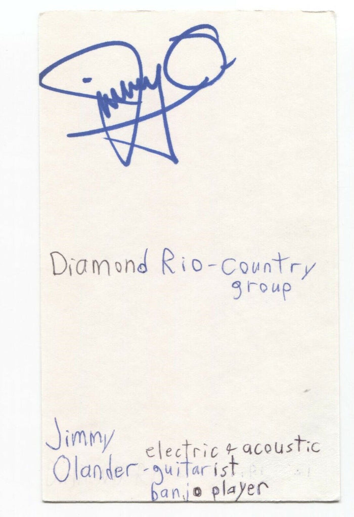 Up for sale is an autographed 3x5 index card, boldly signed by Jimmy Olander, of the band Diamond Rio.  Autograph was part of an enormous collection of over 9000 in person collected signatures.
