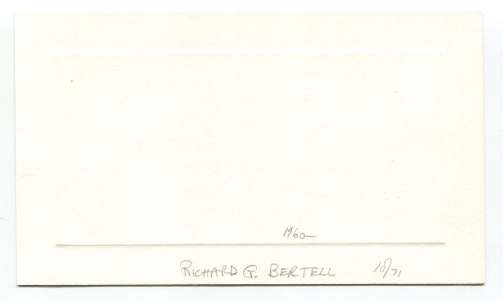 Up for sale is an autographed approximately 3.5 x 5.5 inch card, boldly signed by baseball player Dick Bertell. Just a great looking autograph that will display nicely.   Autograph was acquired by renowned autograph collector Roger Harris.