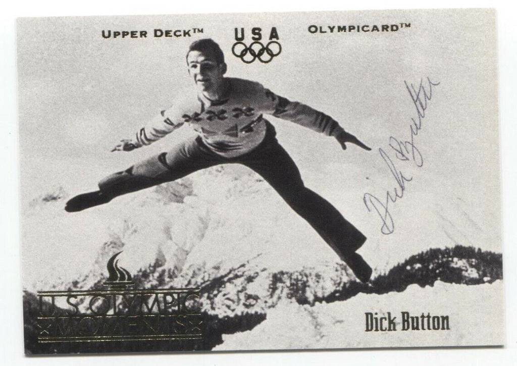 Up for sale is a signed 1996 Upper Deck US Olympic Moments card of Dick Button. Nice, bold autograph on a great image card. Autograph was part of a very large collection of Olympic autographs that I was fortunate to purchase in it's entirety.