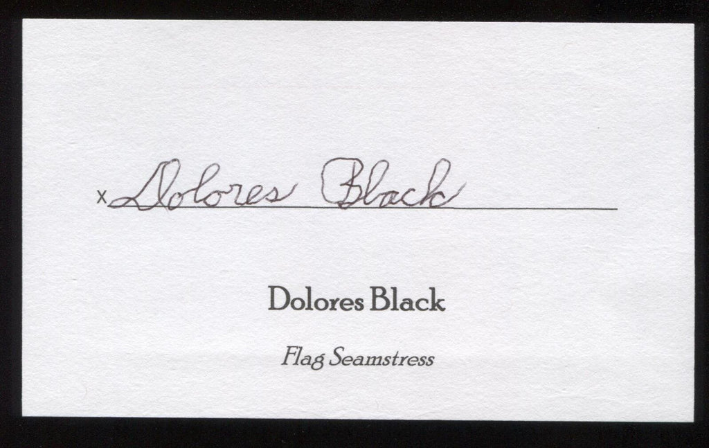 Dolores Black Signed 3x5 Index Card Signature Autographed Flag Seasmstress
