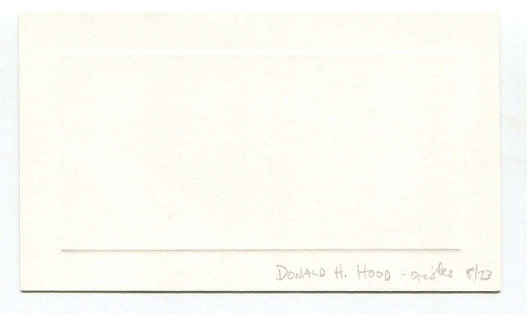 Up for sale is an autographed card approximately 3.5 x 5.5 inch card, boldly signed by baseball player Don Hood. Just a great looking autograph that will display nicely. Autograph was acquired by renowned autograph collector Roger Harris.