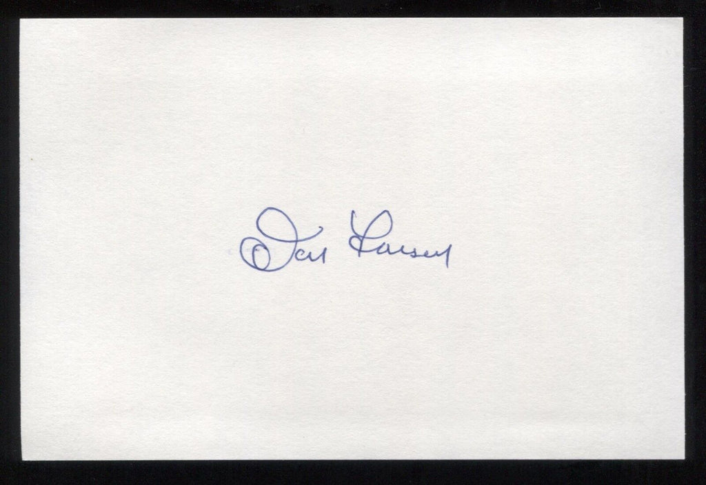 Up for sale is a 4 x 6 inch signed index card, boldly autographed by Don Larsen.  Autograph was part of a single owner, original collection of over 500 autographs, mostly acquired in the 1980's through the early 2000's, that I was fortunate enough to purchase in it's entirety.