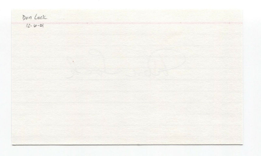 Don Lock Signed 3x5 Index Card Baseball Autographed Signature