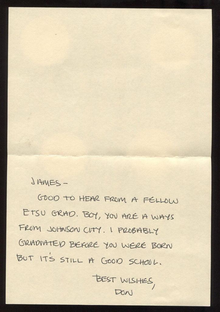 Up for sale is a signed handwritten card, boldly autographed by the cartoonist Don Wilder. Autograph was part of a single owner, original collection of over 500 autographs, mostly acquired in the 1980's through the early 2000's, that I was fortunate enough to purchase in it's entirety.