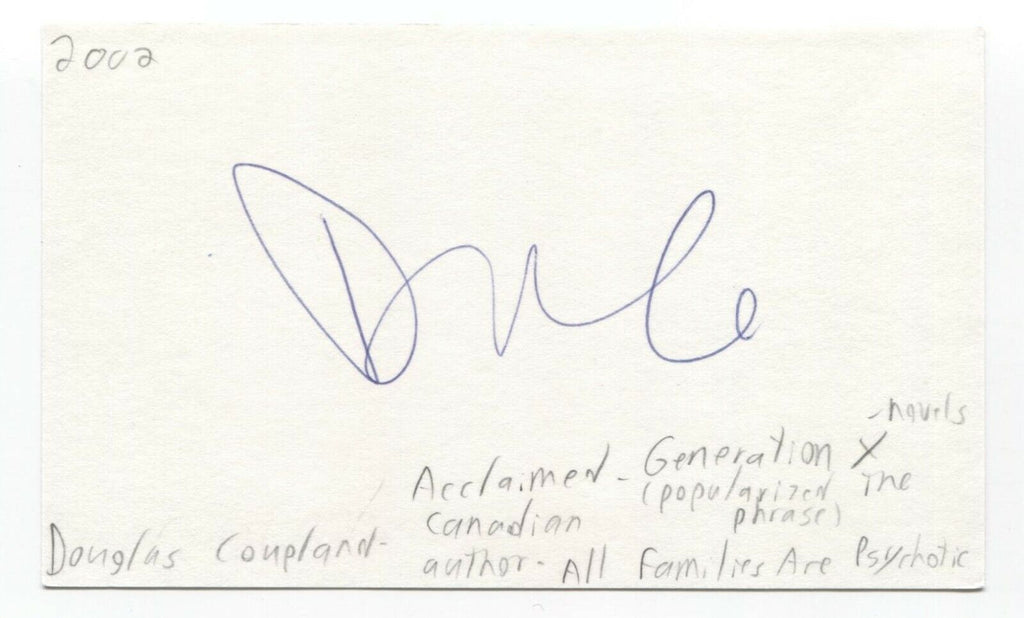 Douglas Coupland Signed 3x5 Index Card Autographed Signature Author Writer