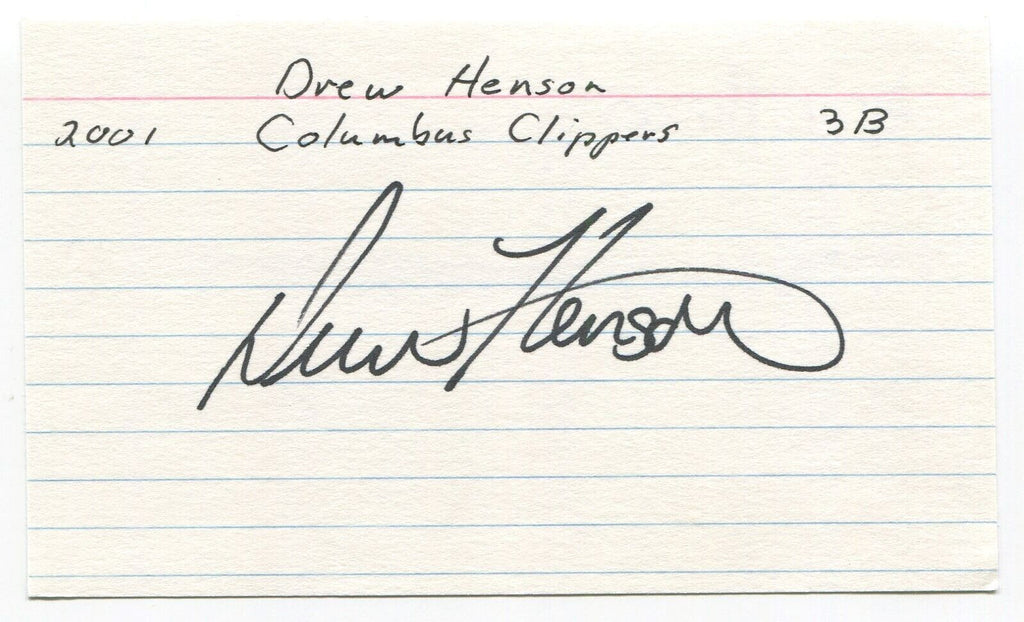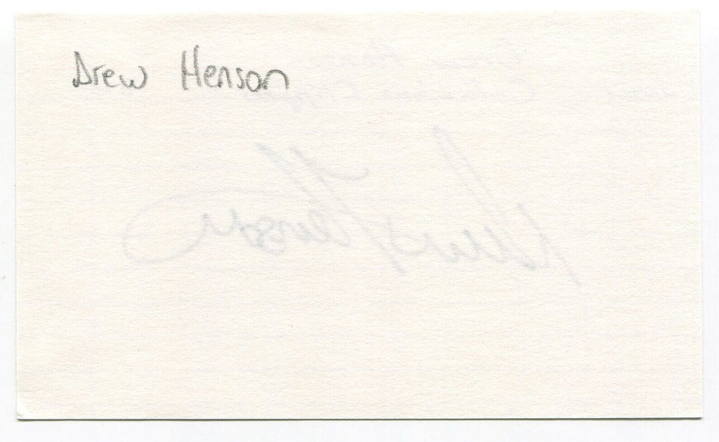 Up for sale is an autographed cut 3x5 index card, boldly signed by baseball and football player Drew Henson. Just a great looking autograph that will display nicely.   Autograph was part of a huge "MP" Collection, consisting of over 3,000 signed index cards that I was fortunate to purchase in it's entirety.