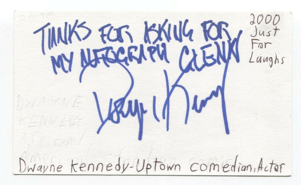 Up for sale is an autographed cut 3x5 index card, boldly signed by actor Dwayne Kennedy. This autograph was part of an enormous collection of over 9000 in person collected signatures.