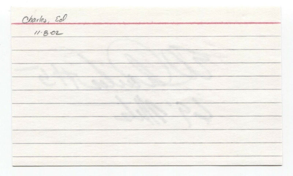 Up for sale is an autographed 3x5 index card, boldly signed by Ed Charles. Just a great looking autograph that will display nicely. Autograph was part of a large collection of over 325 baseball signatures that I was fortunate to purchase in it's entirety.