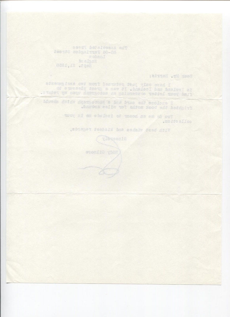 Eddy Gilmore Signed Letter Autographed Signature Pulitzer Prize Winning Reporter