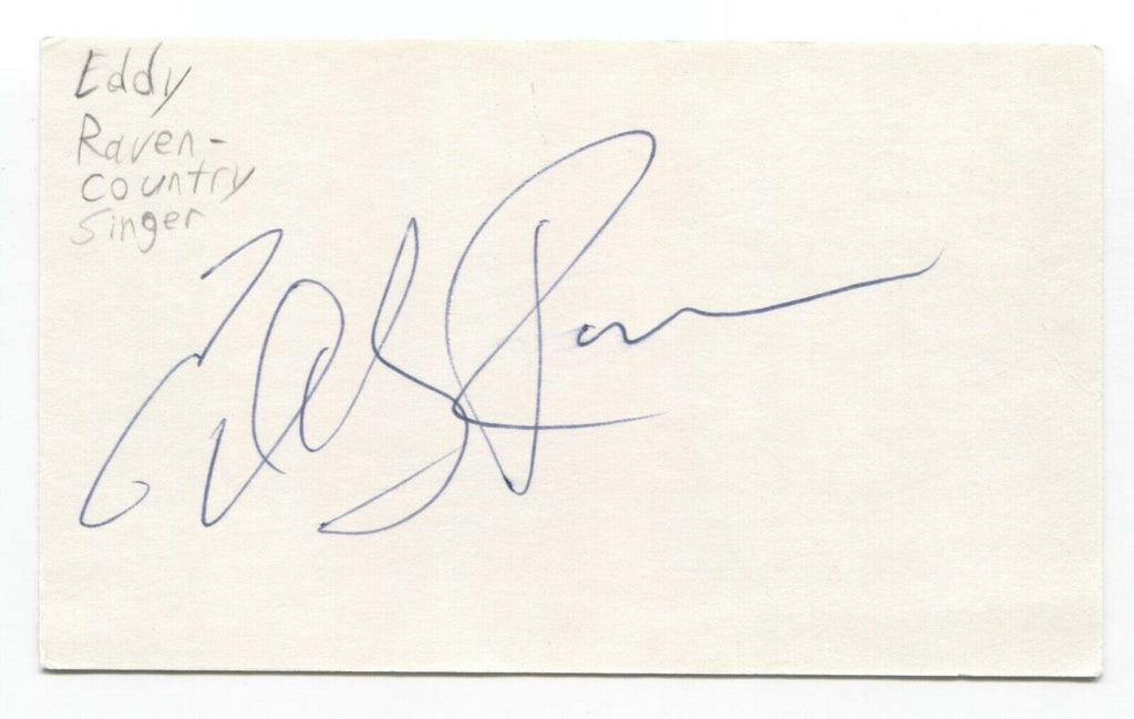 Up for sale is an autographed 3x5 index card, boldly signed by Eddy Raven. This autograph was part of an enormous collection of over 9000 in person collected signatures.