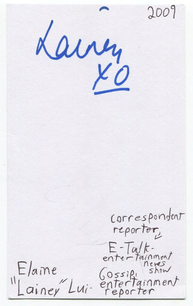 Elaine "Lainey" Lui Signed 3x5 Index Card Autographed Canadian Host Etalk