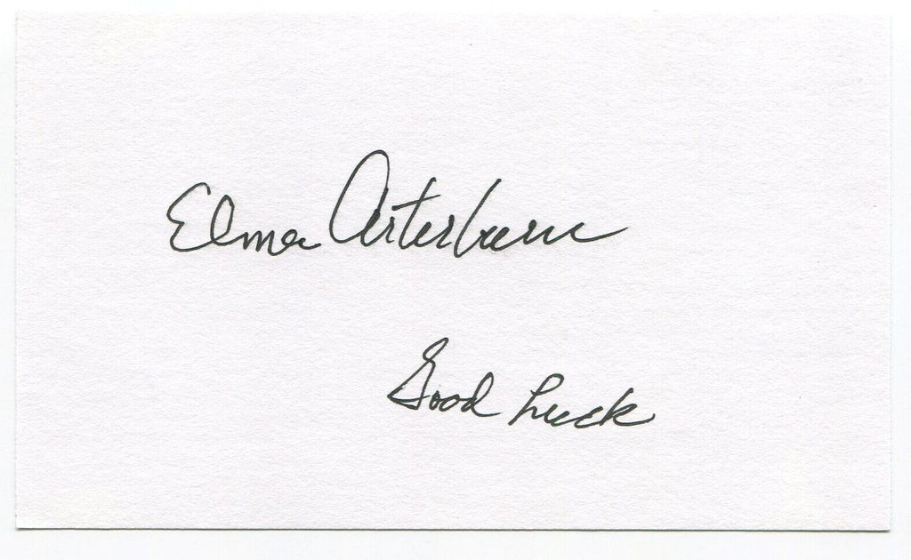 Up for sale is an autographed 3x5 index card, boldly signed by Elmer Arterburn. Just a great looking autograph that will display nicely. Autograph was part of a huge "MP" Collection, consisting of over 3,000 signed index cards that I was fortunate to purchase in it's entirety.
