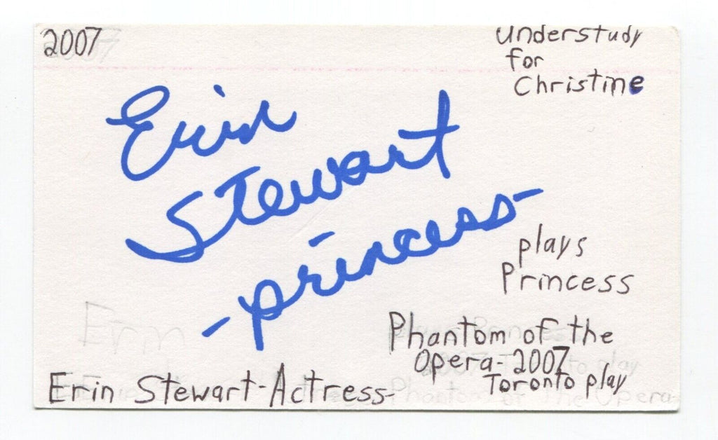 Up for sale is an autographed 3x5 index card, boldly signed by actress Erin Stewart. This autograph was part of an enormous collection of over 9000 in person collected signatures, all acquired in person by the great Glenn Marshall.