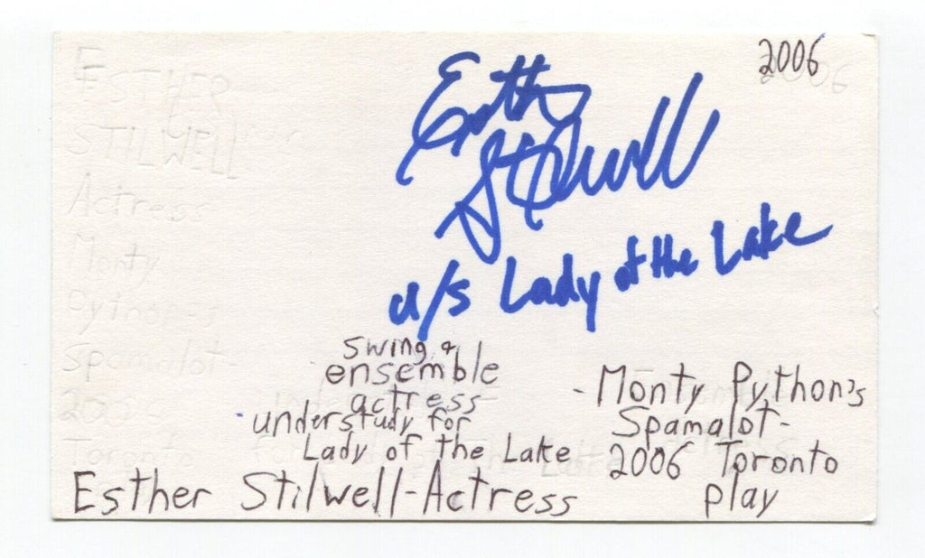 Esther Stilwell Signed 3x5 Index Card Autographed Actress Cats Spamalot