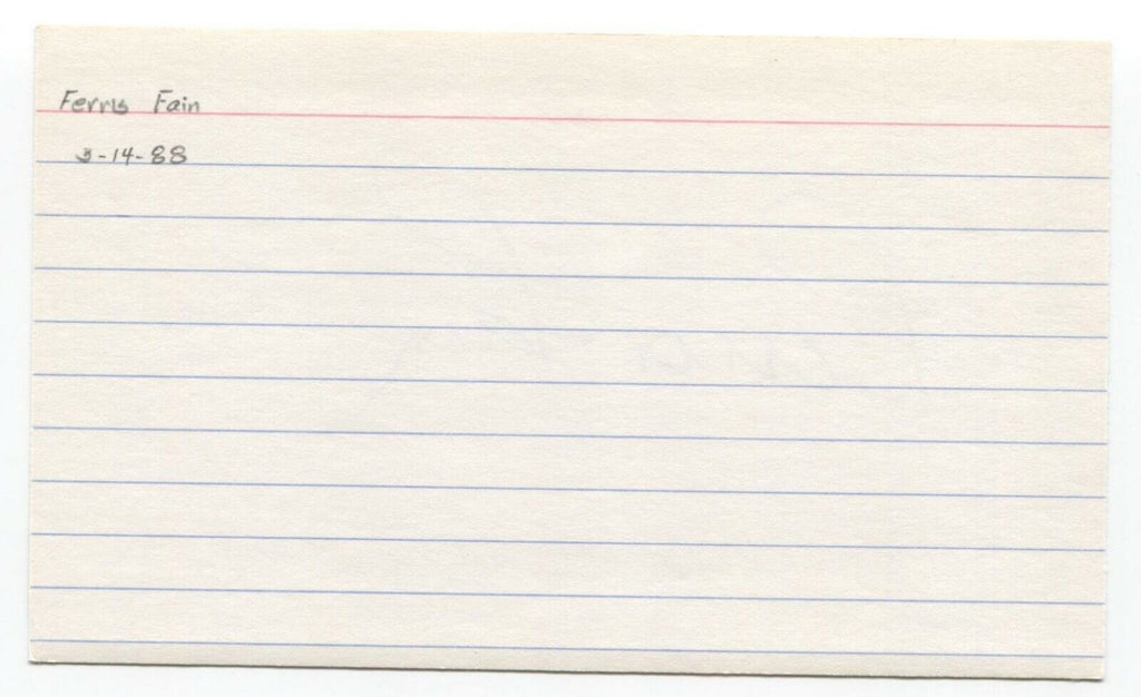 Up for sale is an autographed 3x5 index card, boldly signed by Ferris Fain. Just a great looking autograph that will display nicely. Autograph was part of a large collection of over 325 baseball signatures that I was fortunate to purchase in it's entirety.