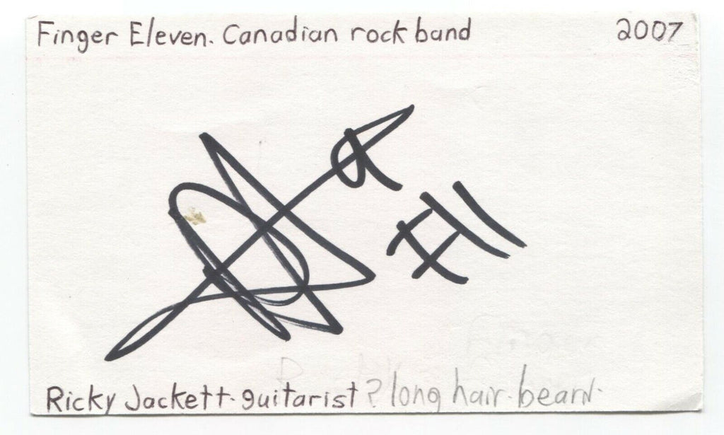 Up for sale is an autographed 3x5 index card, boldly signed by Rick Jackett, of Finger 11. This autograph was part of an enormous collection of over 9000 in person collected signatures.