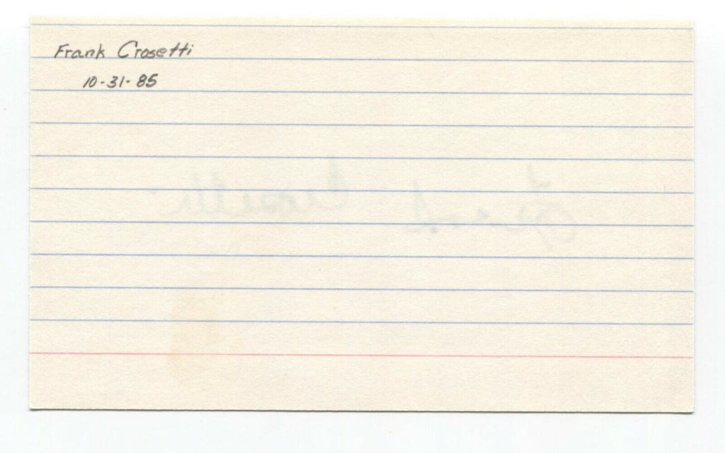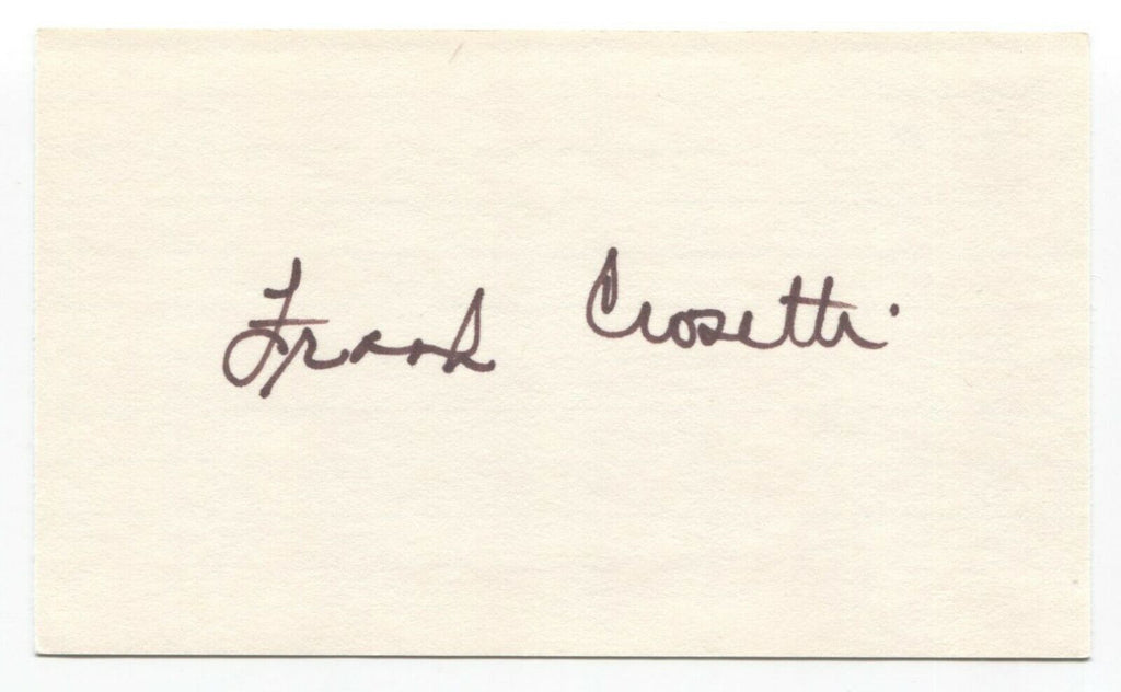Up for sale is an autographed 3x5 index card, boldly signed by Frank Crosetti.  Just a great looking autograph that will display nicely.   Autograph was part of a large collection of over 325 baseball signatures that I was fortunate to purchase in it's entirety.